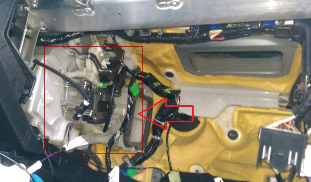 Ну да, там где стрелочка это воздуховод к нему, и подобраться к нему можно именно через него. Он стоит внутри перпендикулярно по ходу движения авто.