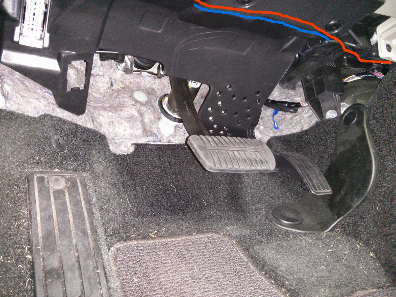 Не сняв накладку не удастся проложить провод по траэктории обозначенной синим цветом .