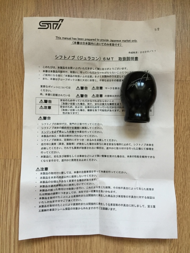 Оригинальная ручка КПП STI, с автографом Toshi Arai (типа лимитед какой-то))