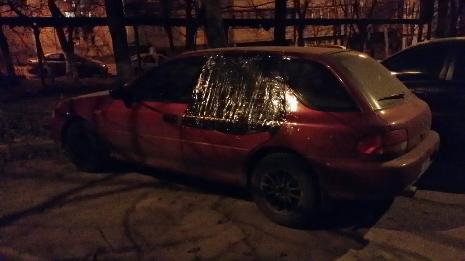 Привет всем! Давненько я не заходил на форум)) Короче какие-то пид№%асы разбили мне заднее левое пассажирское окно на моей старушке импрезе, и вытащили мою тренировочную сумку. Самое смешное, что это произошло возле офиса, где дикий проходняк и выходят окна девятиэтажки и офисного здания + вокруг стояло полно других машин, куда более нарядных. Дело было примерно в 5-6 вечера. Забежал на работу всего на полтора часа и должен был уезжать в Киев... И именно в эти полтора часа какой-то имбицил разбил мне стекло. Теперь он счастливый обладатель моих грязных носков послетренировочных. Обидно, правда, что в сумке лежала еще и лазерная рулетка Bosch. Короче неприятно все это, и, к тому же, стекло теперь искать нужно. Так вот собственно вопрос - кто-то знает где в Днепре можно купить стекло заднее левое пассажирское на Импрезу 98го года, универсал, красную, на черных, дисках и всем старичкам клубным хорошо известную?
