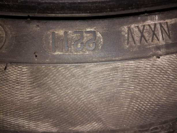 Состояние: хорошее (без порезов, шишек, неравномерного износа. На одной покрышке прокол (не боковой), отремонтирован качественной латкой, высота протектора 7 мм.) Одна шина с индексом нагрузки 94 (670 кг.), остальные - 91 (615 кг.)