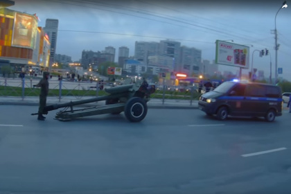 Гаубица отцепилась от тягача и уехала по улице, ихтамнеты бегали ловили