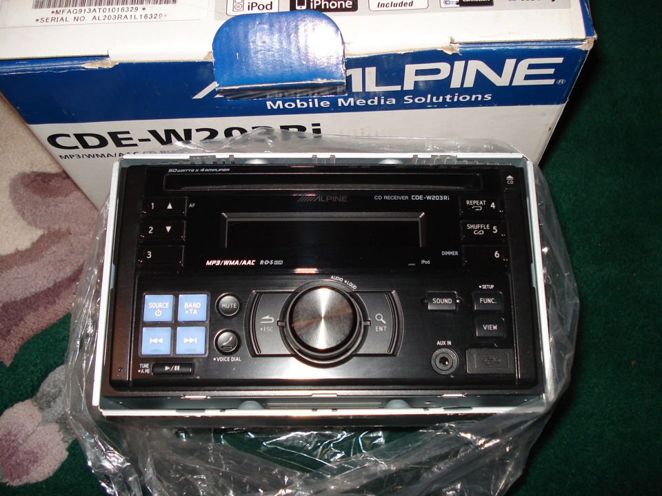 Поддерживает iPhone, iPod, USB. Как и все Alpine - выдаёт чёткий, качественный звук.
