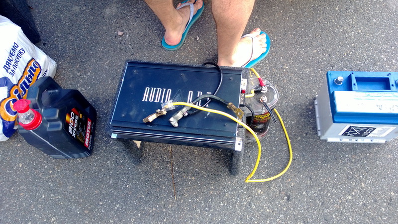 Саб JVC хэнд-мэйд зя, сделан качественно, лупит классно. К нему усилитель audio art rs400.2 его с головой для этого саба хватает, кондер простой и предохранитель.