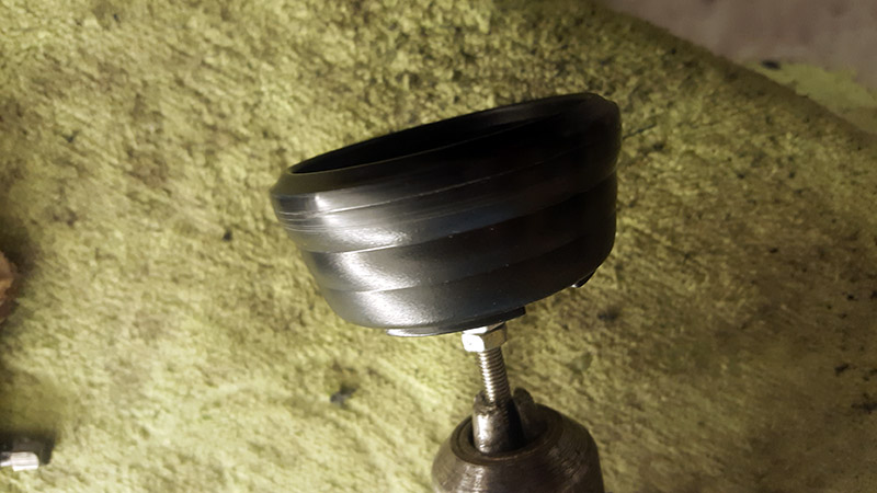 После взял болт под шестигранник, зажал его в дрель и сделал из него заготовку под форму гильзы